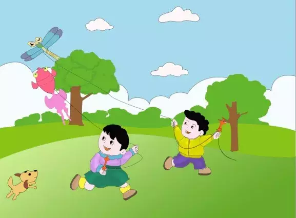 看图片,图中是什么季节?画了什么人?他们在干什么?用一两句话写一写。(不会写的字用拼音代替)