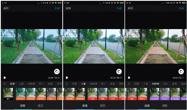 上百个滤镜效果可以使用,支持拍摄照片/视频,不限制时长,包含静音、添加背景音乐、边框、滤镜、2倍速、4倍速、慢镜头、视频反转等视频功能