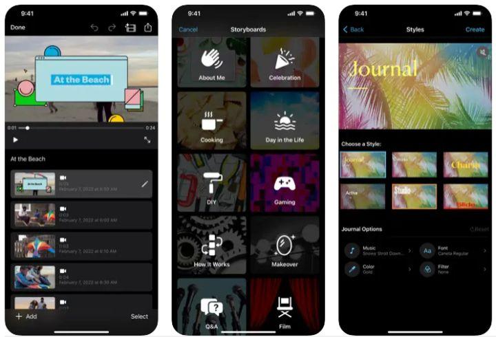 可以利用它快速创建魔幻影片、故事板、影片,只需轻点几下,你就可以创建和分享自定的精美视频,里面的模板素材比较丰富,可以直接套用。