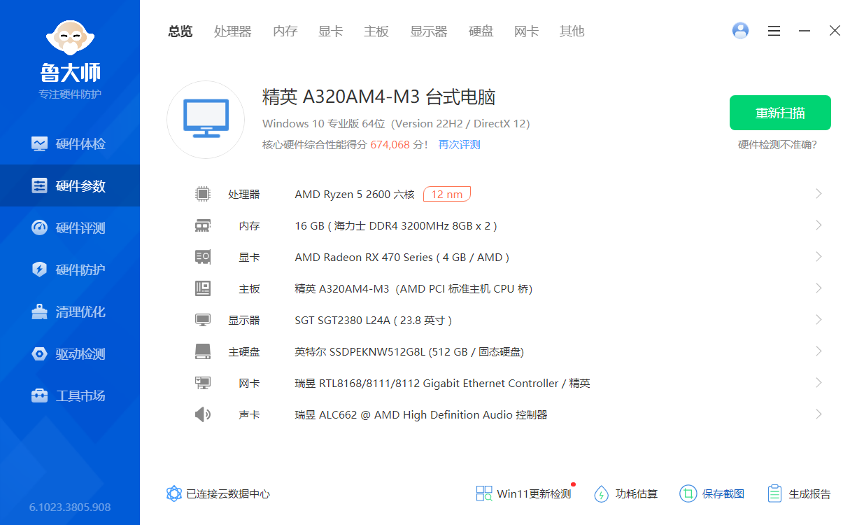 鲁大师 v6.1021.3160.817更新日志[新增] 对内存品牌 移速 的识别[修复] Windows11 任务栏温度标尺适配问题[修复] 两个同型号显示器只显示一个的问题[修复] 体检页面卡检测的问题[修复] AMD Radeon RX 6600XT和6600M识别问题