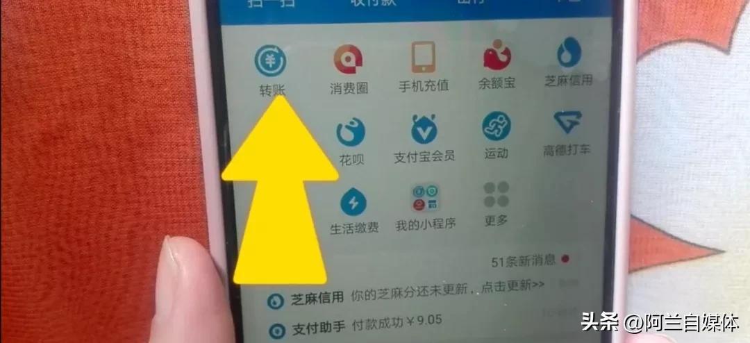 到底在哪里可以看到呢?首先我们打开支付宝,在这里看上方有一个“转账”,我们把这个转账打开,那么在这里面立刻就可以看到上方有一个输入框,我们只需要在这个输入框里面输入对方的电话号码就OK了!