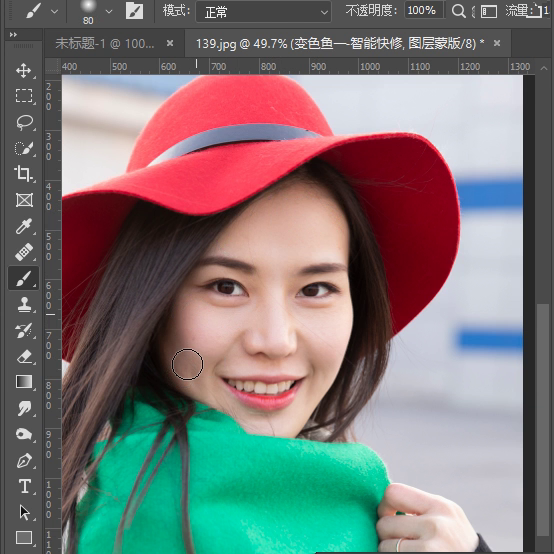 污点修复画笔工具: 主要是修复小的瑕疵,在修复人像的时候通常用来遮盖脸上的痘痘。
