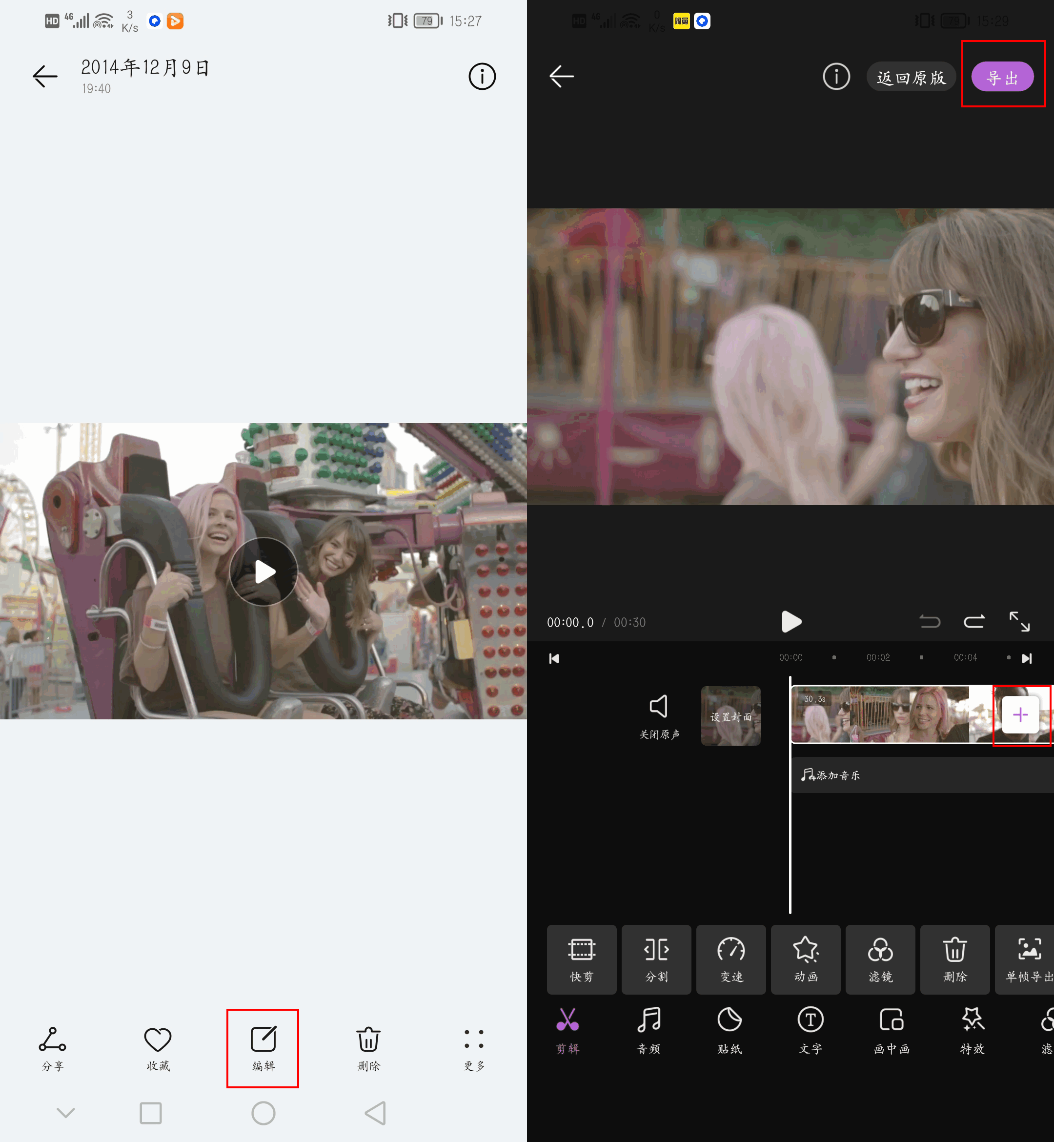 我们先打开手机相册,在里面找到需要合并的视频,接着点击下方工具栏中的【编辑】,就可以进入剪辑界面了,接着点击视频轨道边的【+】按钮,选择需要合并的其他视频,软件就会自动帮你合并了,最后保存下来就可以了。
