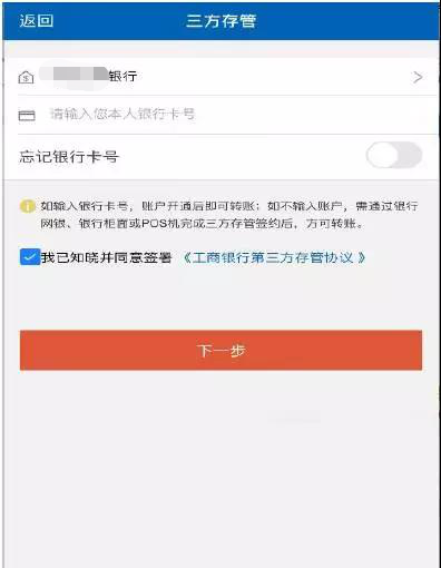选择三方存管银行,如您忘记卡号,或暂未开通银行卡,可选择“忘记银行卡号”,待您完成后续签约手续后,才能进行转账