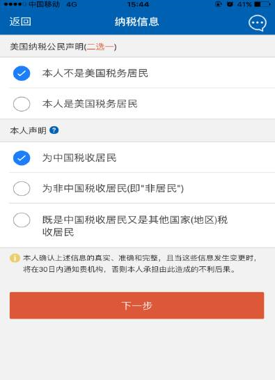 此部分内容包括“美国纳税公民声明”和“本人声明(中国个人税收居民身份声明)”两部分,您可根据实际情况进行选择