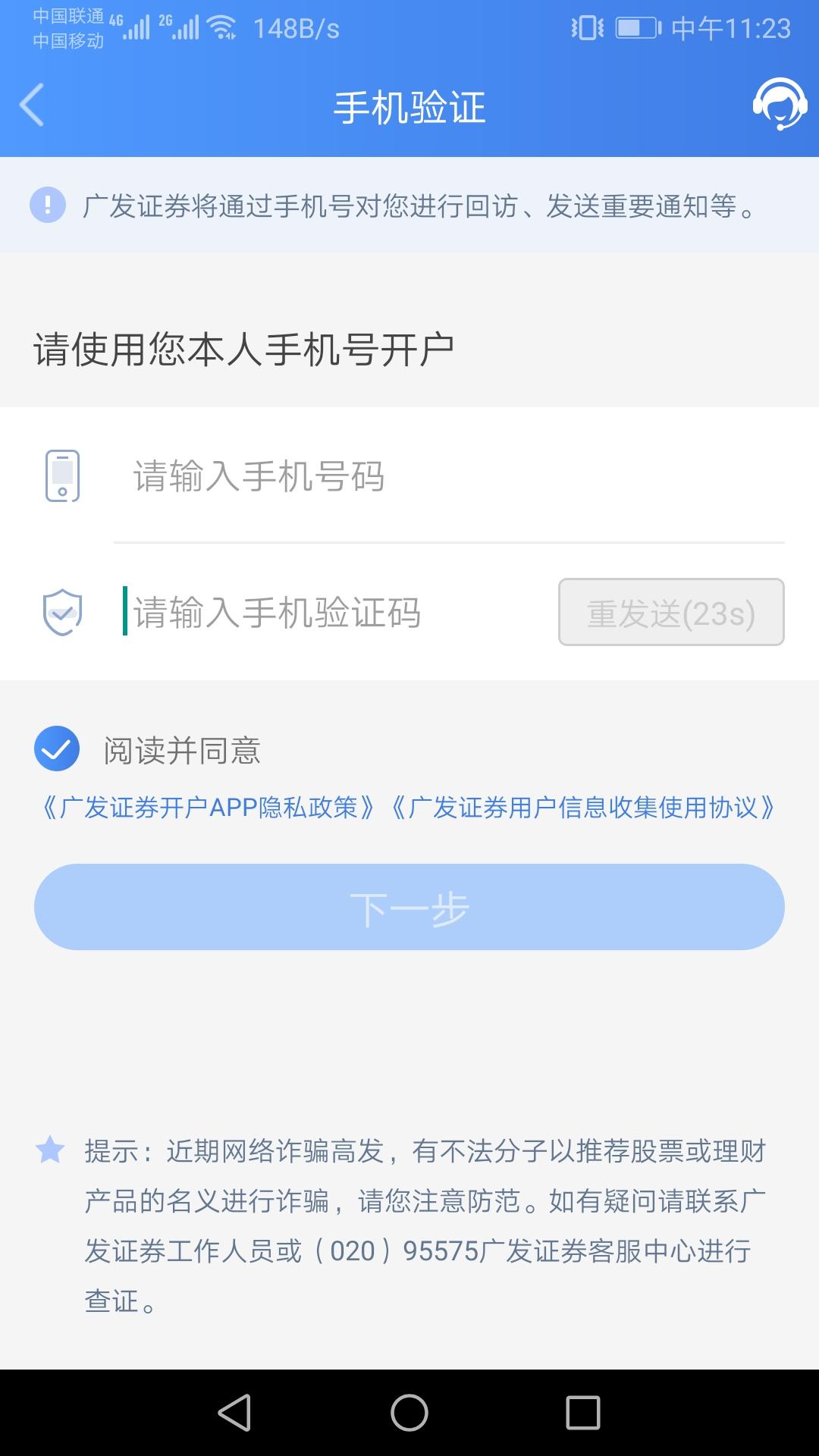 扫描专属开户二维码输入手机号码获取开户验证码根据提示下载安装【广发证券开户】app二、开户流程-手机验证