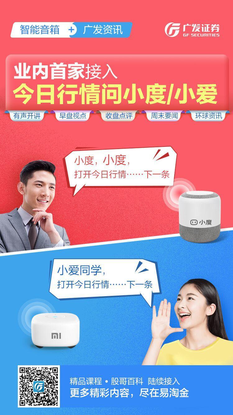 广发证券把握先机,积极布局,将易淘金APP语音智能技术不断扩大应用范围,成为2019百度AI开发者大会首家亮相券商。2019年上半年,作为业界首家接入的券商,易淘金APP部分功能已在百度和小米智能音箱成功登录。用户可以随时通过智能音箱询问实时问行情、收听投资资讯等。