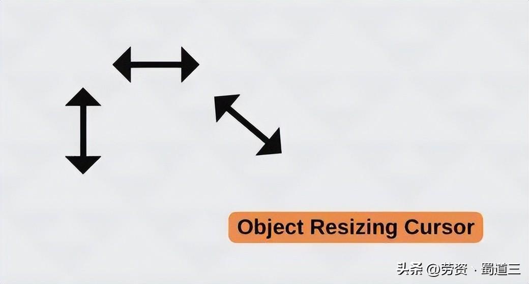 调整大小光标是一个小箭头,有两条从箭头延伸的小线,称为“双头箭头”光标。它表示用户可以通过拖动其中一条线来调整对象的大小。