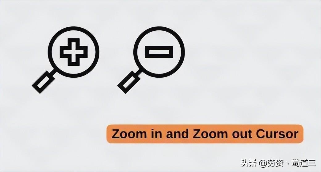 放大/缩小光标是一种放大镜,指示用户可以放大或缩小图像或文本,通过按住鼠标左键,然后向上或向下移动光标来放大或缩小。