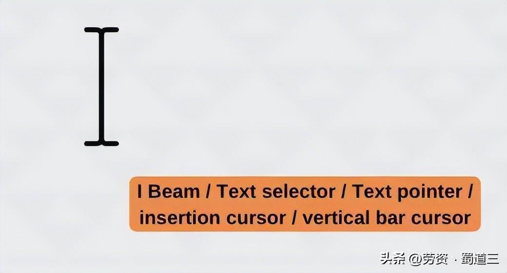 此 I 形指针也称为文本选择器/指针、插入光标、竖线光标或插入符号。