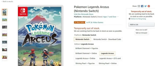 划重点:《宝可梦传说:阿尔宙斯》又真香了!部分地区卖到脱销