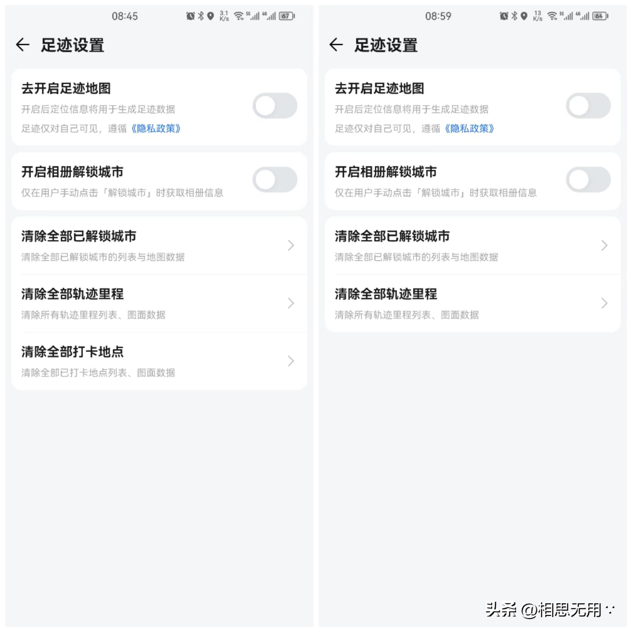 3.足迹设置中增加了“清除全部打卡地点”,清除全部已打卡地点列表、图面数据。