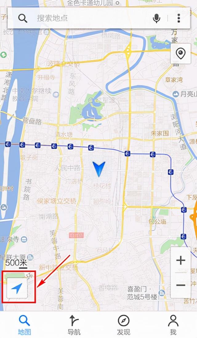 3、定位成功,“箭头”变为蓝色,图中心出现你的当前坐标。