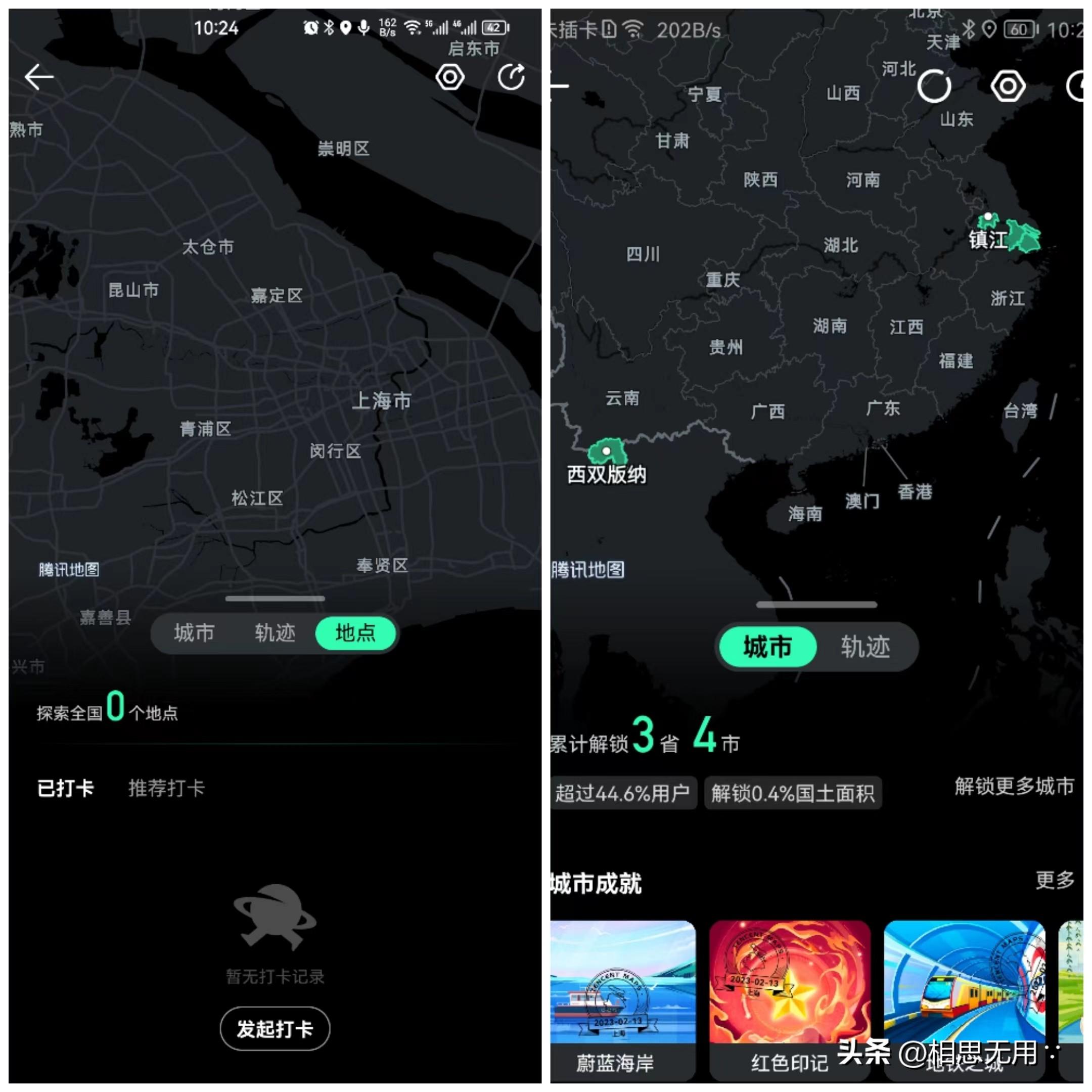 4.“我的”页面顶部“成市成就”名称改为“地点打卡”。