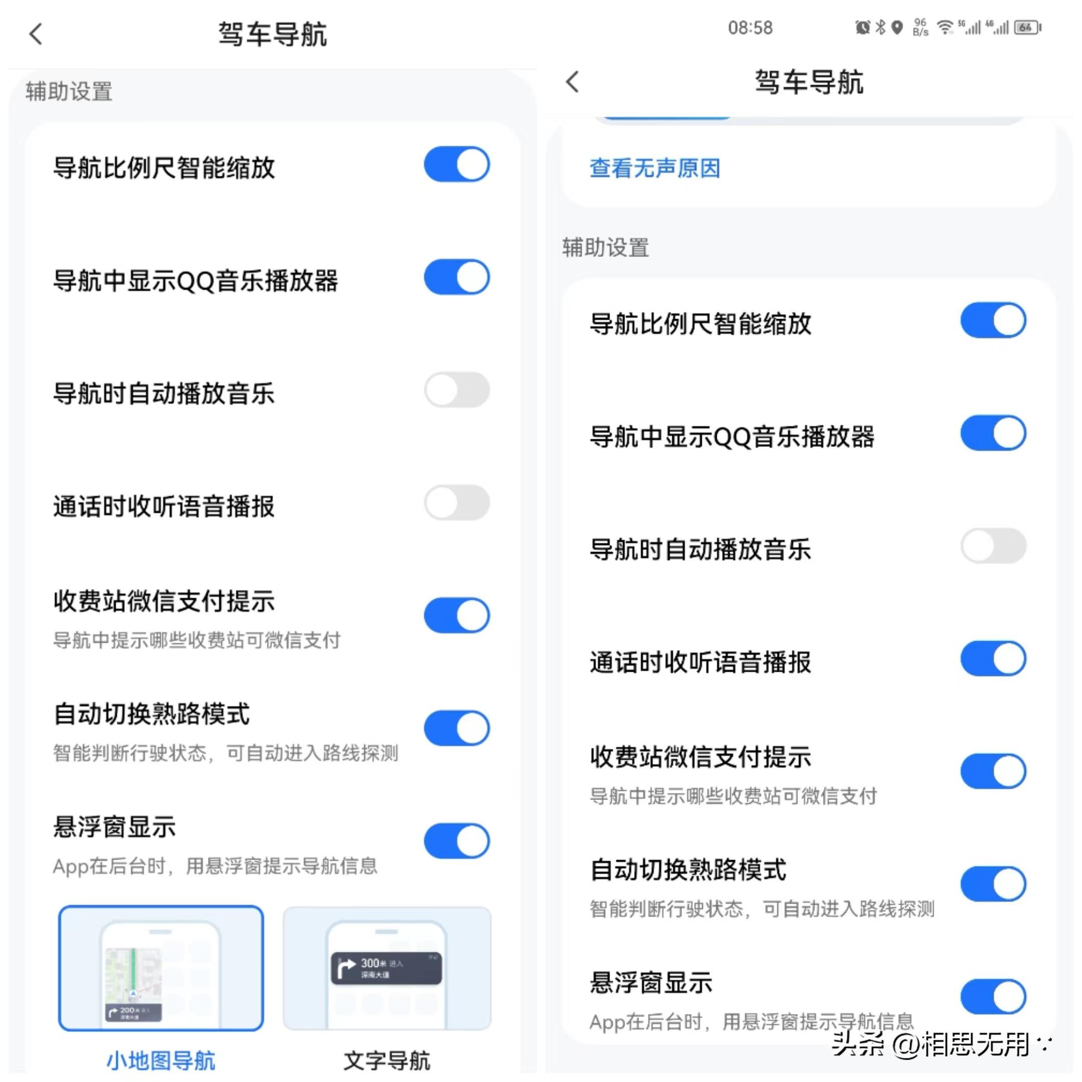 2.驾车导航-辅助设置中的“悬浮窗显示”增加了“小地图导航”和“文字导航”两个选项;
