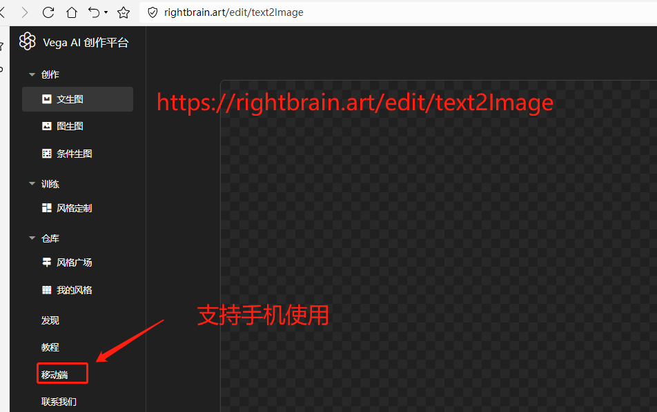 Vega AI 创作平台进入方法我会放在下方截图里,或者请参考我上篇文章:只要一部手机,就能使用功能强大的AI绘画软件,关键还免费