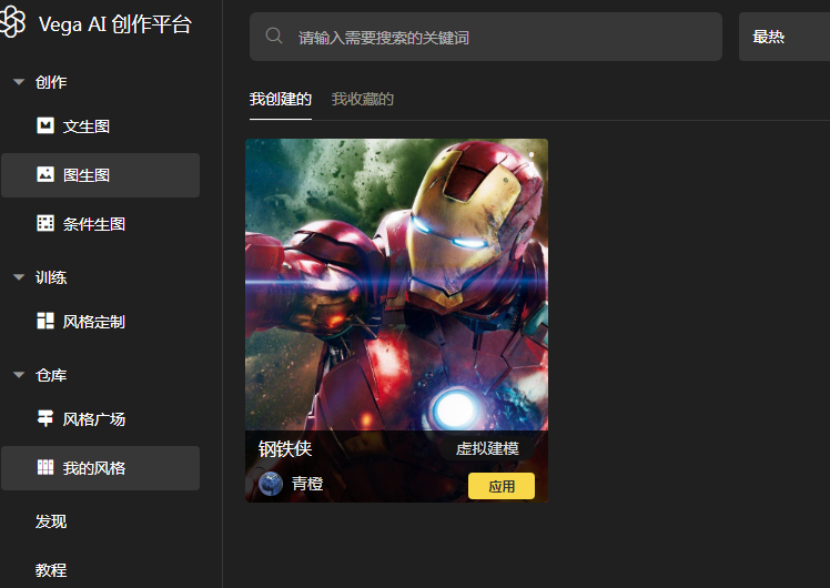 今天接着继续给大家介绍 Vega AI 创作平台,这个平台应该是借用了 stable diffusion 的开源代码,所以功能和使用习惯都和 stable diffusion 类似。昨天简单介绍了文生图的使用方法,今天我们来介绍它的风格定制功能,也就是 stable diffusion 的模型训练(Embeding)功能。