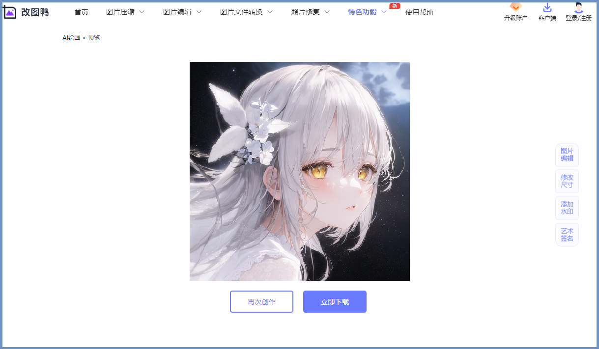 一个功能非常丰富的在线修图网站,在【趣玩特效】中可以找到它的【AI绘画】功能。