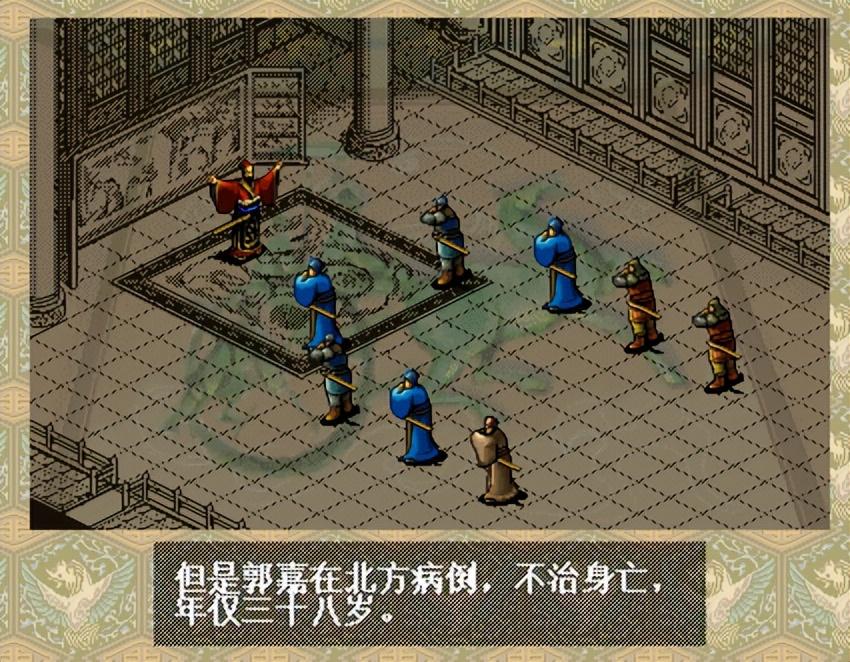 歼灭袁氏后,忠心耿耿的郭嘉继续献策平定乌丸,可是,身体单薄的他在行军路上病倒,不治身亡,年仅三十八,真是一个伤心的通关呢。(曹操传里,小编也是舍不得郭嘉与典韦,基本都是能救就救,尽管知道不救会有遁甲天书或凤凰羽衣)