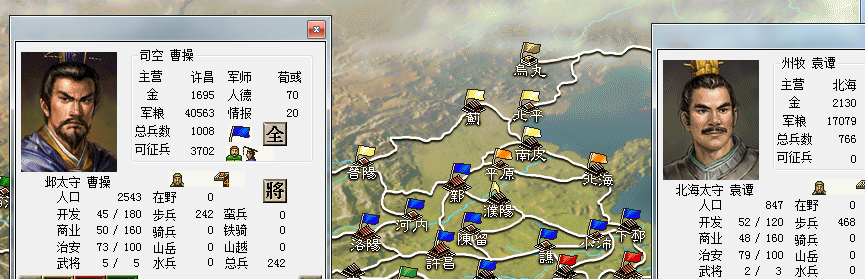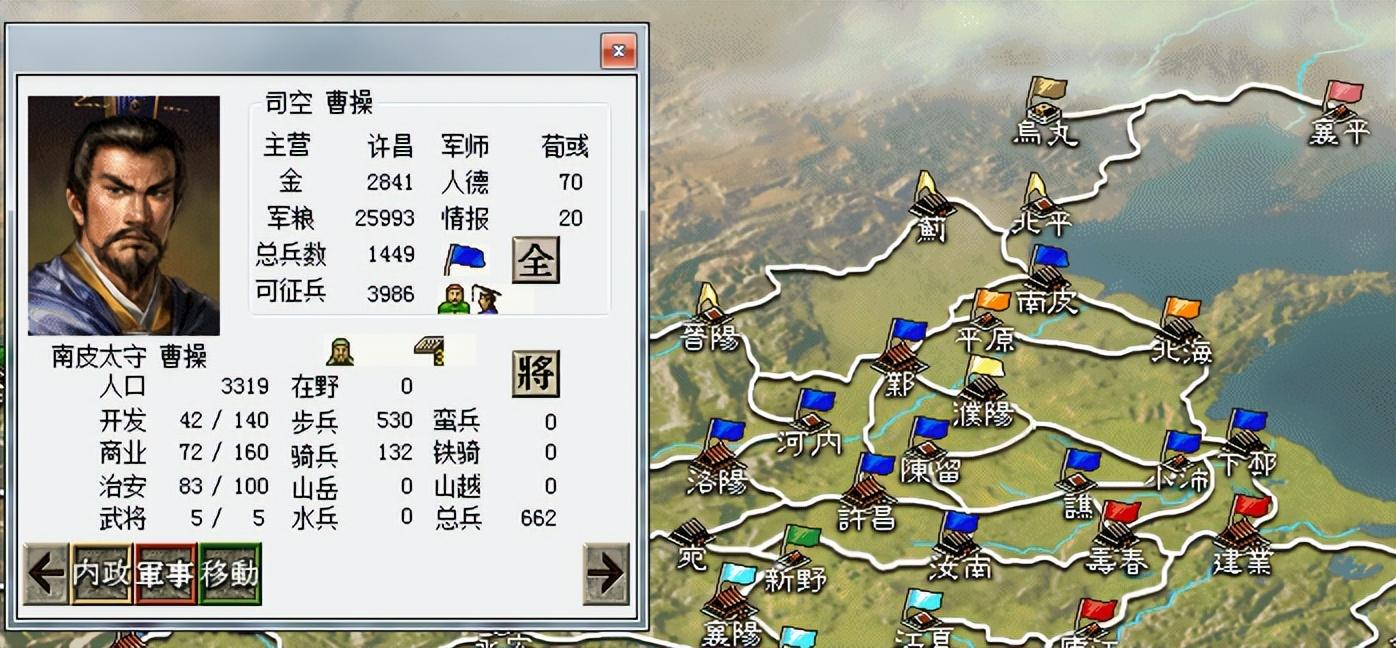拿下邺城后,本来已经快揭不开锅的曹操,立马仓库报道收粮4万担!另外由于袁熙远在蓟,结果濮阳被切断补给线(旗子掉下来了),南皮城将领空了,可是有整整3万兵(含1万多骑兵)在南皮。如果趁袁熙还没反应过来,我出击的话会怎样?