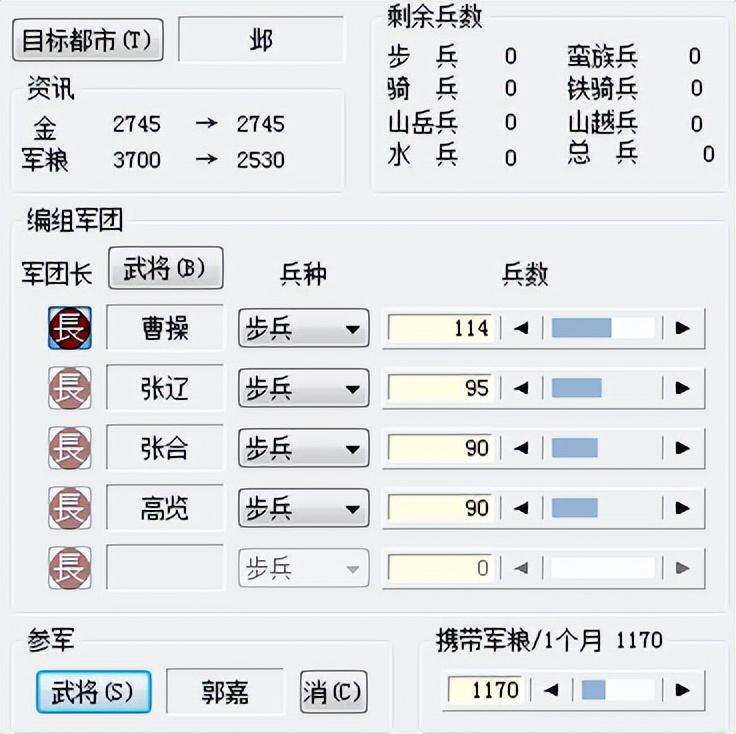 ·早期钱粮较少的时候,应该首选招募步兵来充实一线的防线。虽然步兵战斗力是最弱,但相比价钱,并没有价格的比例差距。如果一味追求高性能,那估计早期钱粮很快见底,甚至连搞内政的钱都没有了,更不用说打仗了;