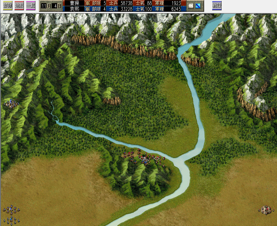 大家看得没错,确实是分为南北两部分,因为两方差异还是有点大,主要体现在骑兵、铁骑兵和水兵,总的来说,在北方,骑兵和铁骑兵除了森林以外,基本可以横着走,而水兵基本除了水上以外就是普通步兵;在南方骑兵和铁骑兵受山地、森林、水和沼泽的影响较大,其它地形也略有下降,而水兵在南方基本可以通吃,水上更不用说就是王者。