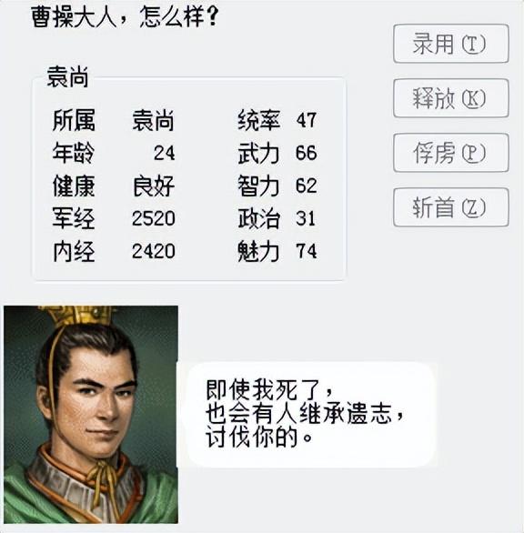 第一仗就抓住了陈琳、逢纪、审配和袁尚,特别是审配和逢纪,两人是袁尚的左臂右膀,不投降,全砍了!袁熙继位。这样第一仗就完成了条件的三分之一。开心!