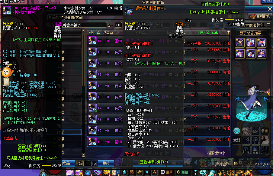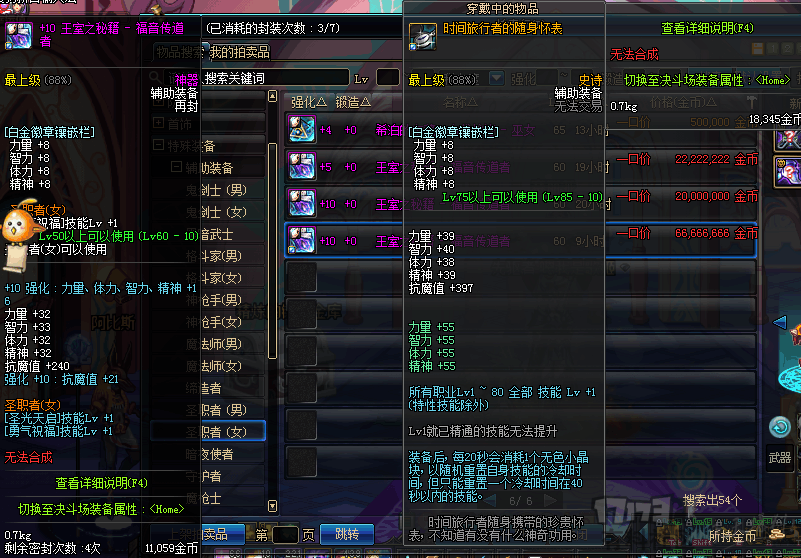附魔方面如果是DNF圣耀级的毕业装还是建议出点血换55智力的,一般的话由于紫卡价格远低于粉卡,选择修嘉璐升级一次30智力即可,成本不超过100W。